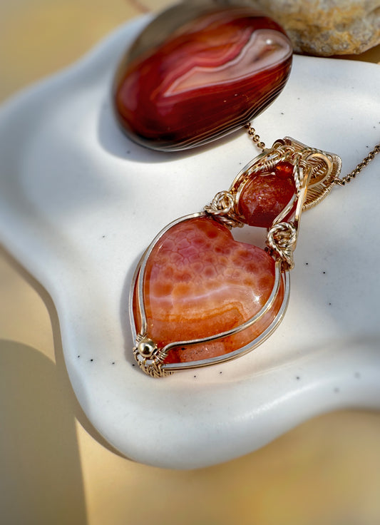 Banded Carnelian & Andesine Necklace in 14k Gold Filled Wire