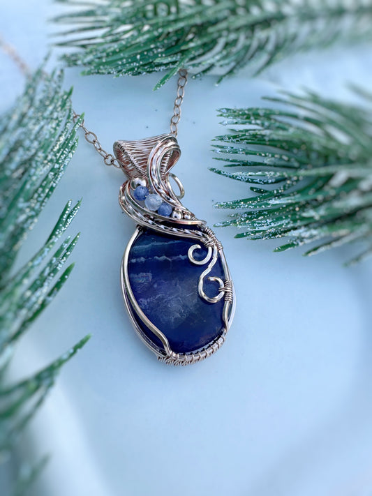 Fluorite, Tanzanite & Blue Chalcedony Necklace in 14k Rose Gold Filled