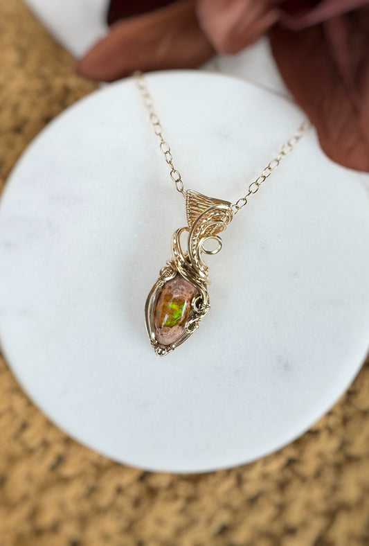 12.5 ct Mexican Fire Opal Necklace in 14k Gold Filled