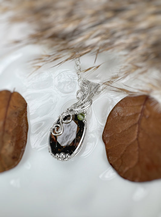 15 ct Faceted Smoky Quartz & Peridot Necklace in 0.925 Sterling Silver