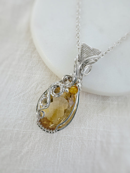 29.52 ct Citrine & Amber Necklace in Argentium Silver