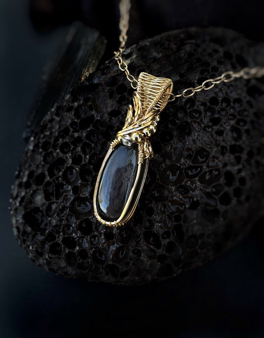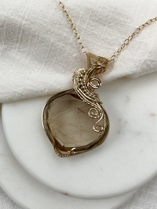 High Quality, Faceted Rutilated Smoky Quartz Necklace in 14k Gold Filled