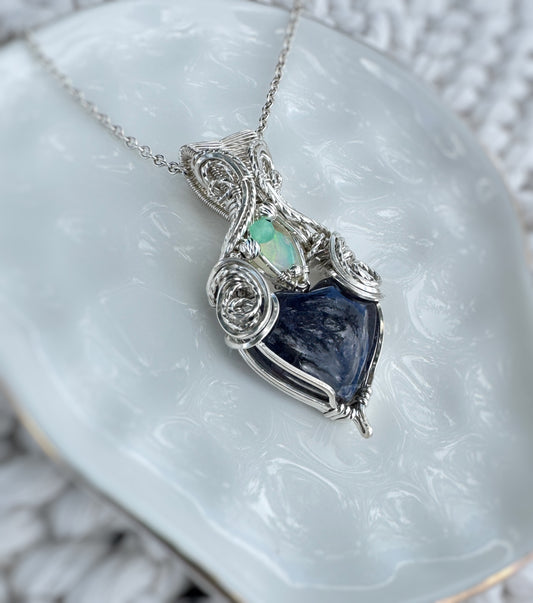 Iolite, Opal & Chrysoprase Necklace in 0.925 Sterling Silver