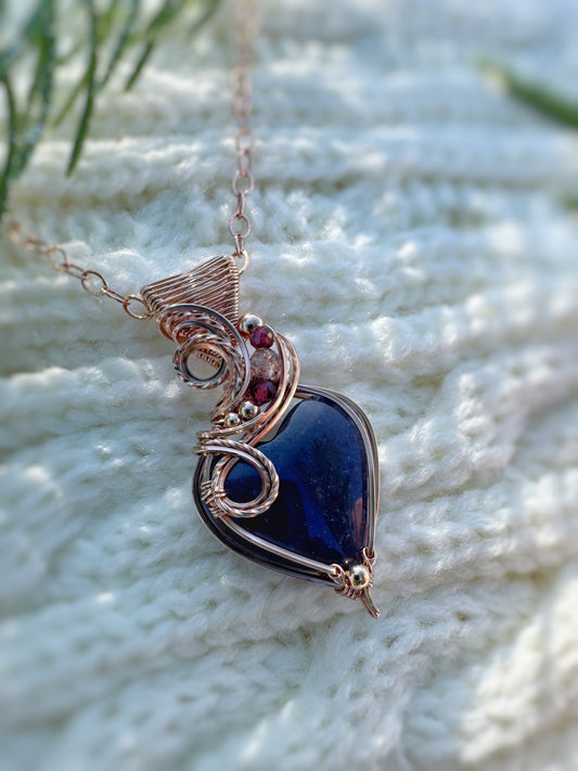 Iolite Heart, Garnet & Iolite Sunstone Necklace in 14k Rose Gold Filled