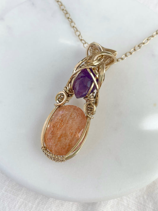 High Quality Faceted Sunstone & Amethyst Necklace in 14k Gold Filled