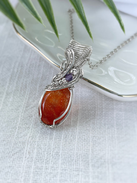 High Quality Sunstone & Amethyst Necklace in 0.925 Sterling Silver