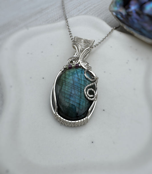 Labradorite Crescent Moon Pendant in Argentium Silver
