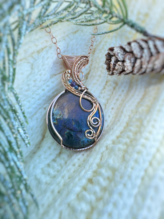Labradorite, Amethyst & Blue Kyanite Necklace in 14k Rose Gold Filled