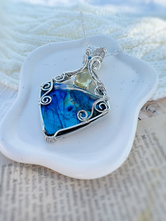 Labradorite, Lemon Quartz & Blue Kyanite Statement Necklace in Argentium Silver