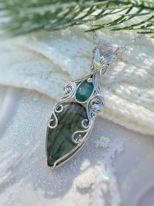 Labradorite & Green Kyanite Statement Necklace in Argentium Silver