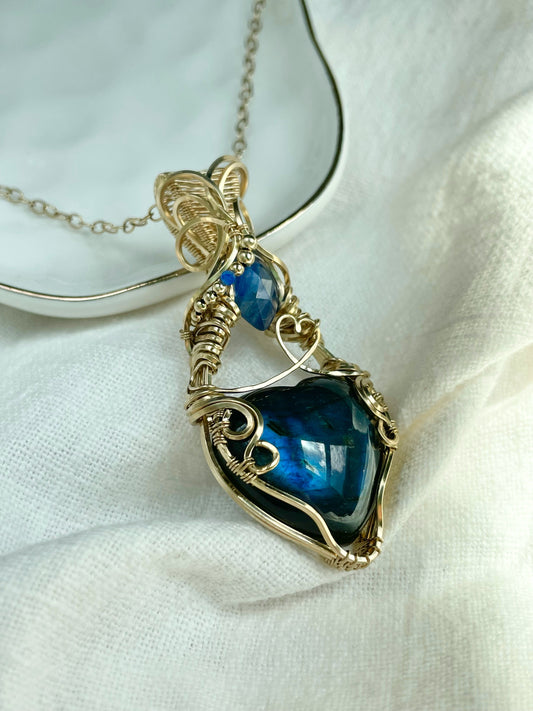 Labradorite Heart & Blue Kyanite Necklace in 14k Gold Filled