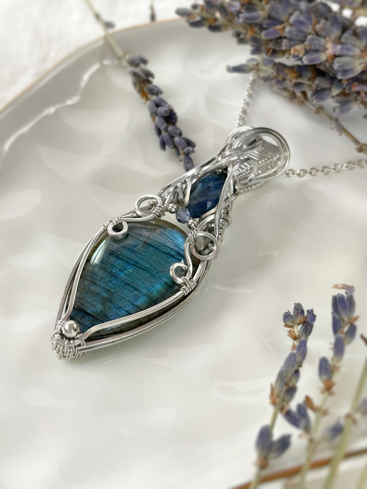 Labradorite & Blue Kyanite Necklace in Argentium Silver
