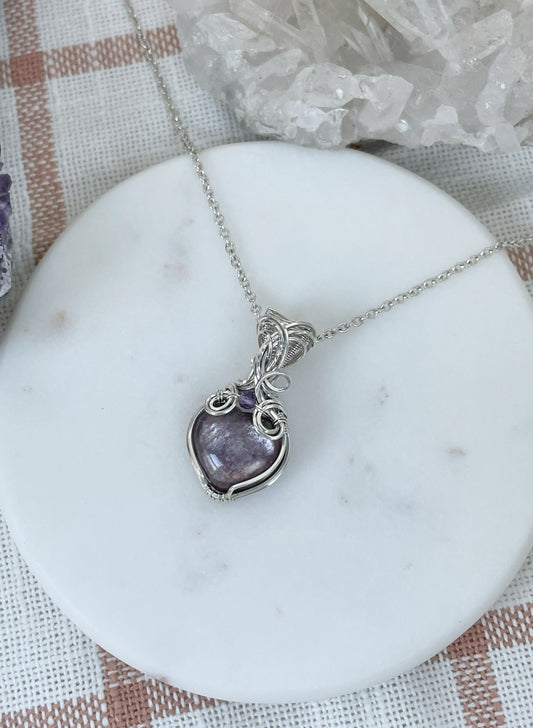 Lepidolite & Amethyst Necklace in 0.925 Sterling Silver