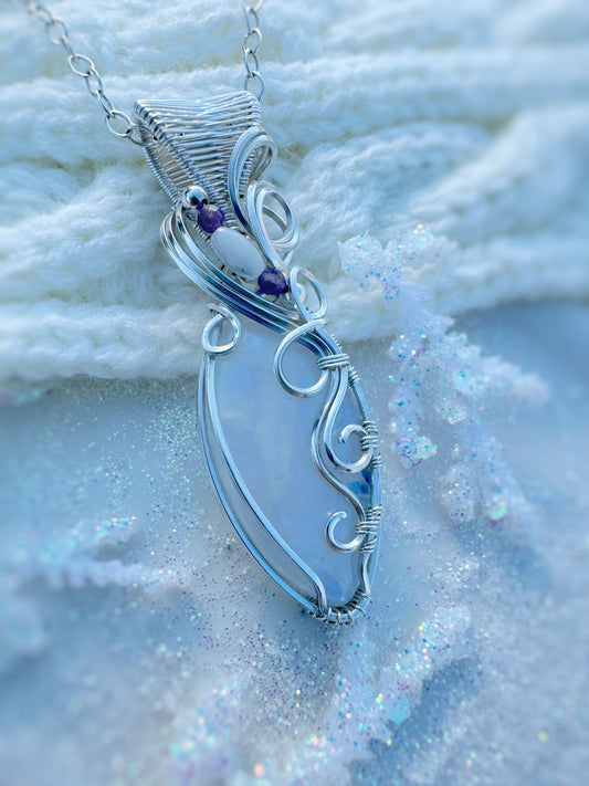Moonstone, Amethyst & Pearl Necklace in Argentium Silver