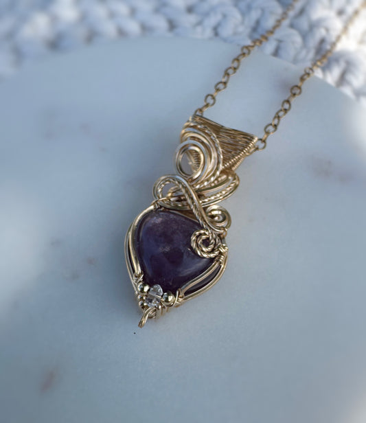 Lepidolite Heart & Herkimer Diamond Necklace in 14k Gold Filled
