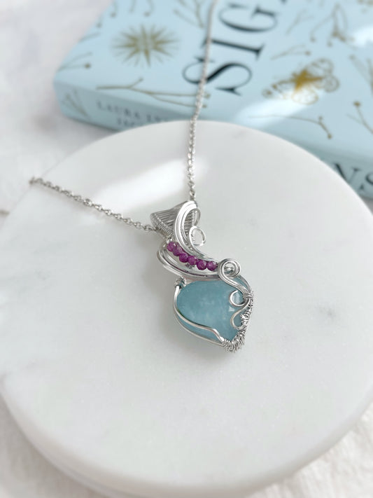 Mini Aquamarine Heart & Ruby Necklace in Argentium Silver