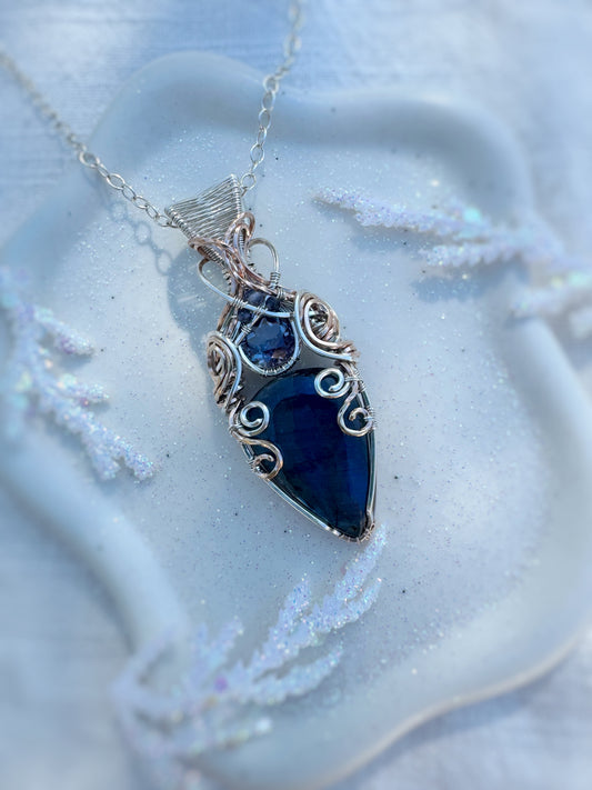 Purple Labradorite, Simulated Alexandrite, Sapphire & Iolite Necklace in 0.925 Sterling Silver & 14k Rose Gold Filled