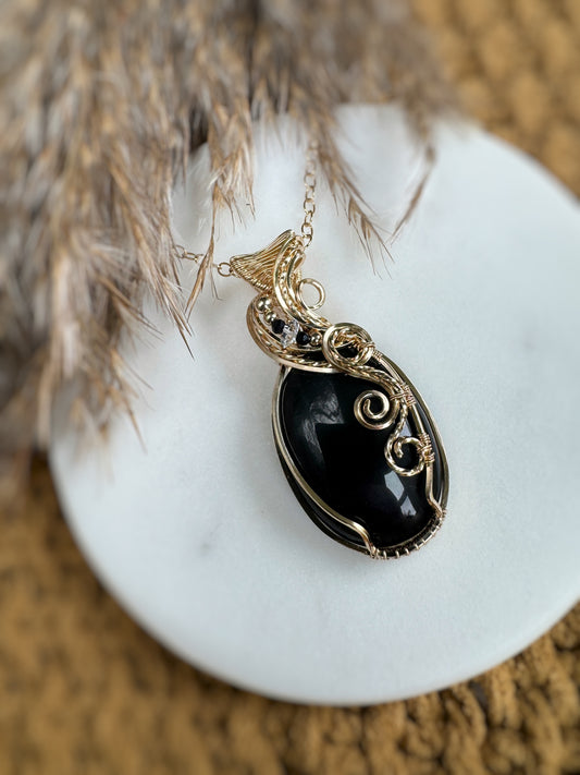 Rainbow Obsidian, Black Onyx & Herkimer Diamond Necklace in 14k Gold Filled