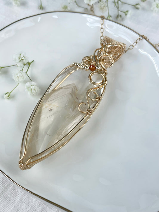 Rare 'Manifesting' Quartz & Hessonite Garnet Statement Necklace in 14k Gold Filled