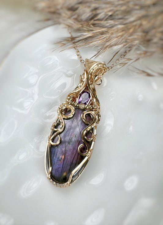 Purple Labradorite, Amethyst & Citrine Necklace in 14k Gold Filled