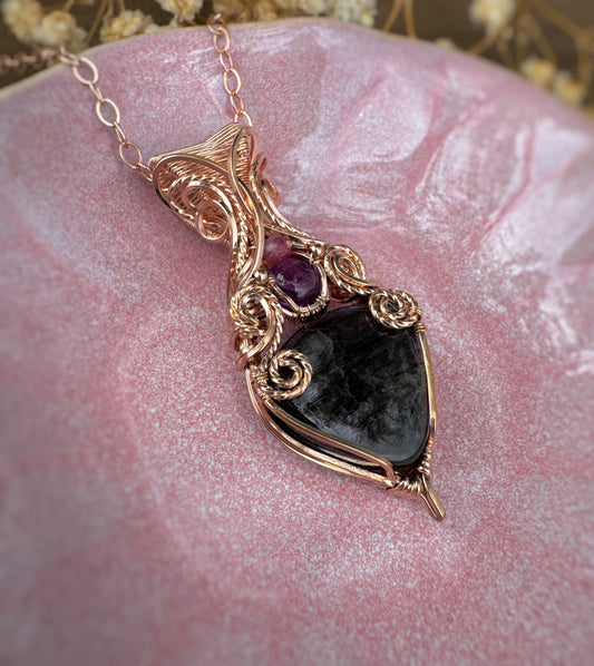 Purple Labradorite, Amethyst & Rubellite Necklace in 14k Rose Gold Filled