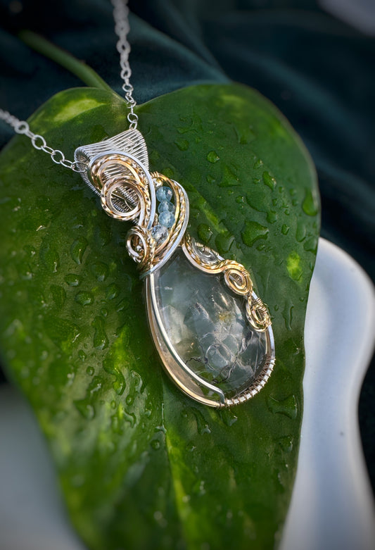 Rare Enhydro Quartz & Aquamarine Necklace in Argentium Silver & 14k Gold Filled