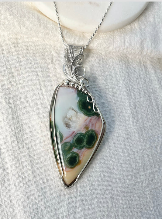 Rare Old Stock Ocean Jasper Necklace in Argentium Silver