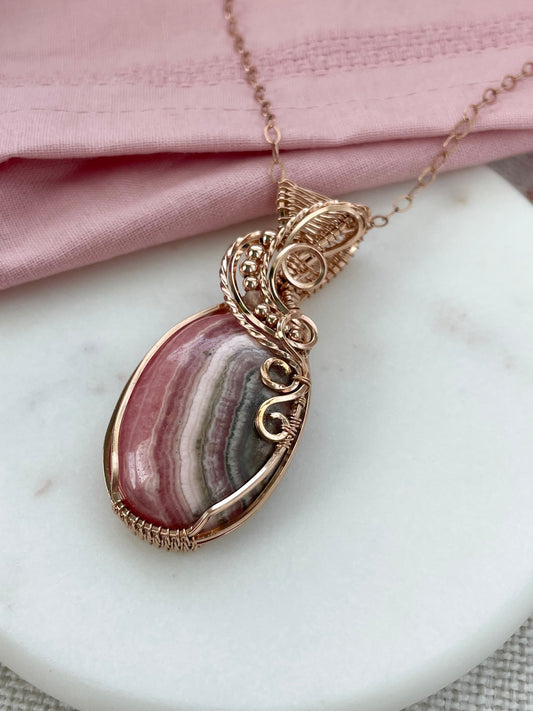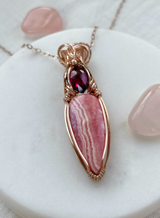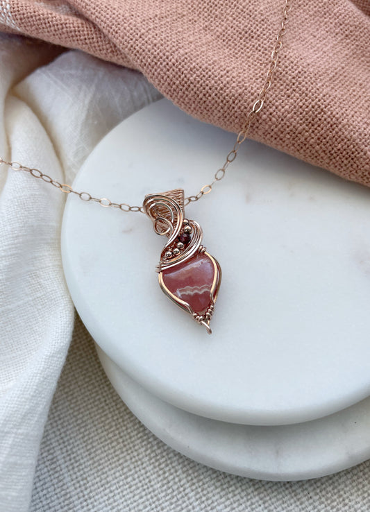 Rhodochrosite Heart & Garnet Necklace in 14k Rose Gold Filled