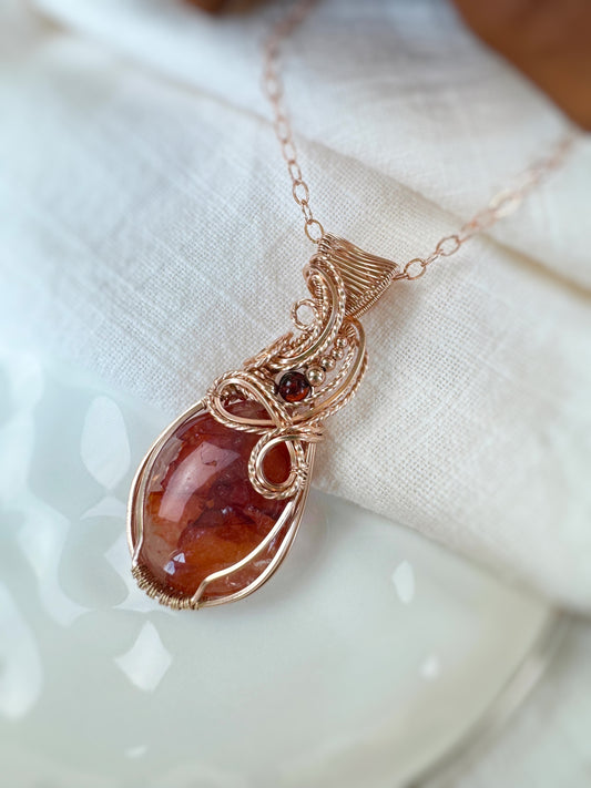 Red Hematoid Quartz & Amber Necklace in 14k Rose Gold Filled
