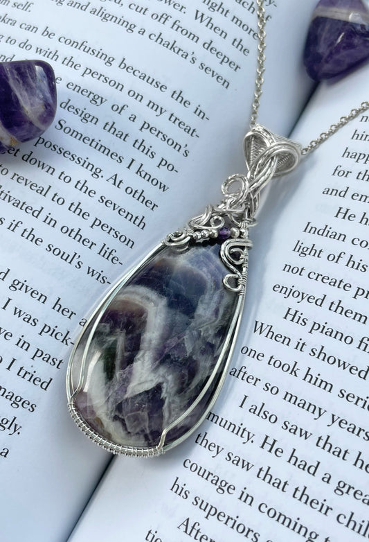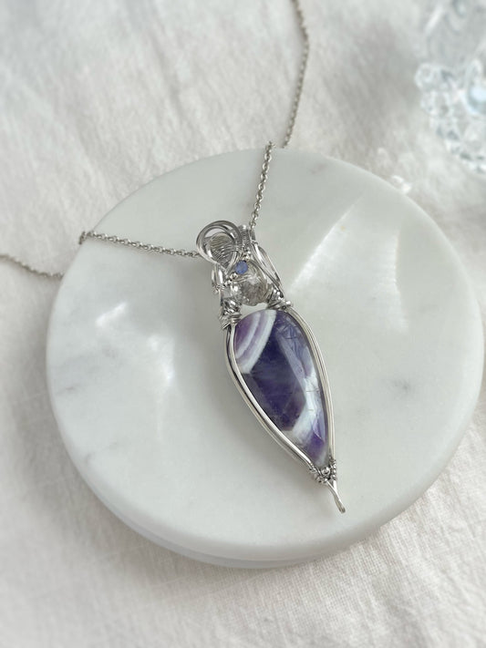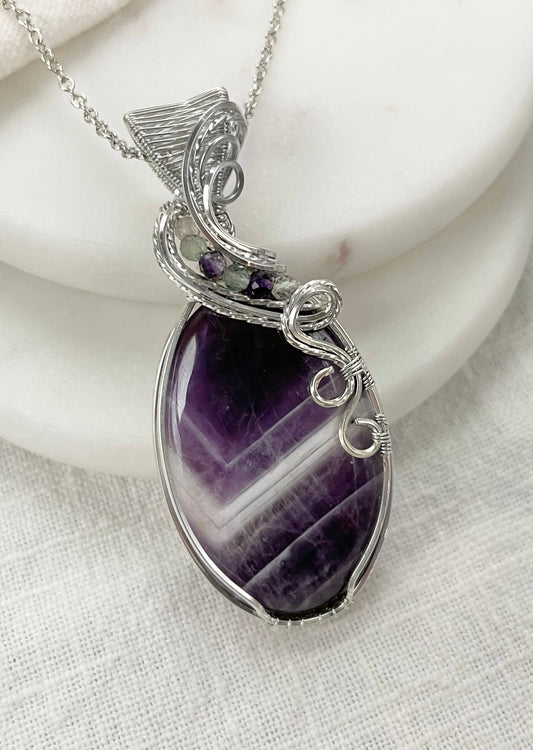 Chevron Amethyst, Clear Quartz & Tanzanite Necklace in Argentium Silver