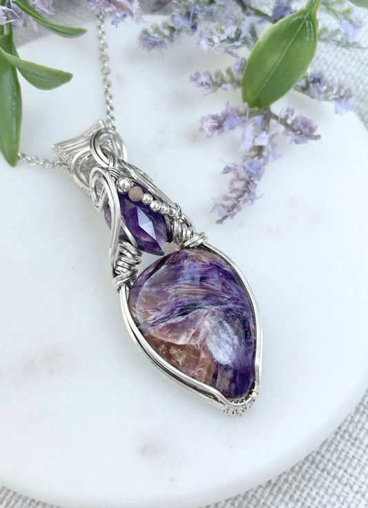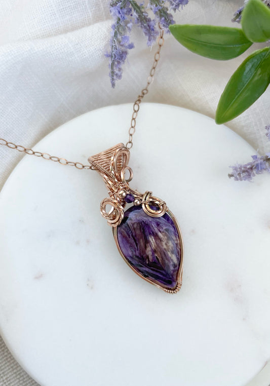 Charoite & Amethyst Necklace in 14k Rose Gold Filled