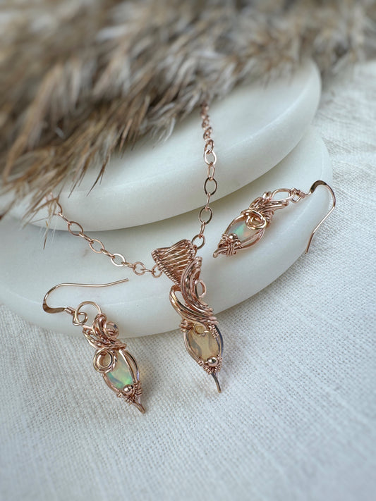 Dainty Faceted Opal Set (Necklace + Earrings) in 14k Rose Gold Filled