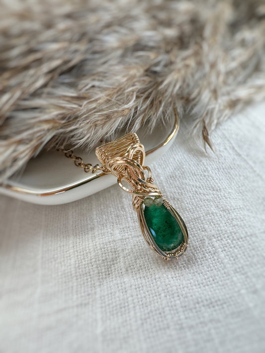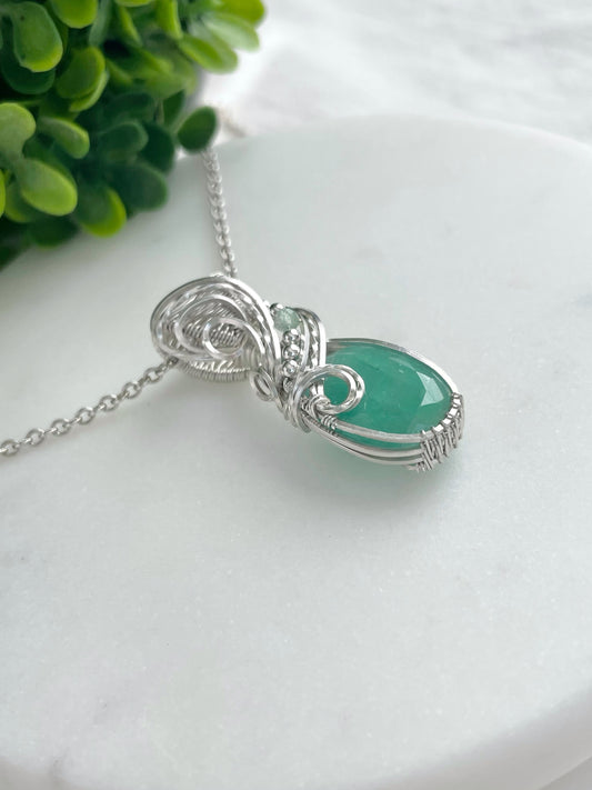 Dainty, Faceted Emerald & Green Aventurine Necklace in Argentium Silver