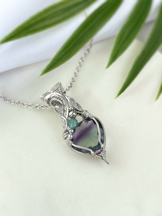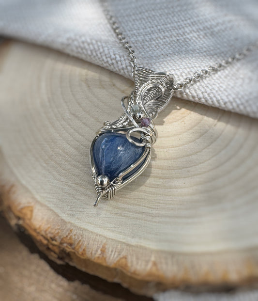 Dainty Blue Kyanite Heart & Fluorite Necklace in Argentium Silver