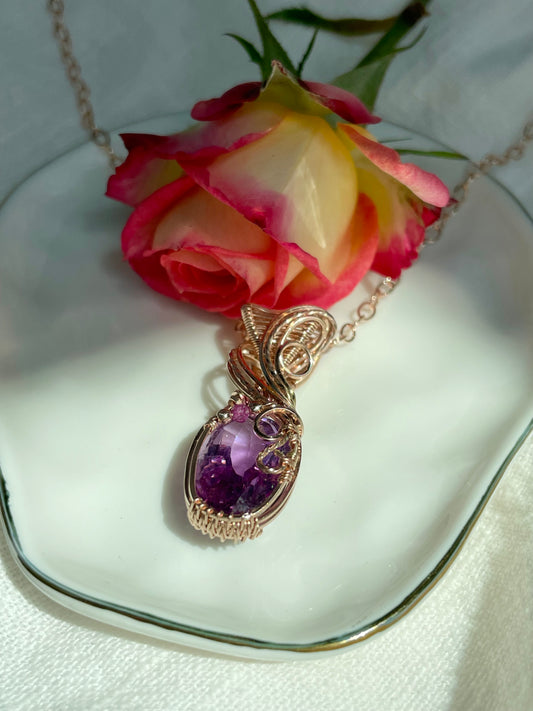 Faceted Amethyst & Ruby Necklace in 14k Rose Gold Filled