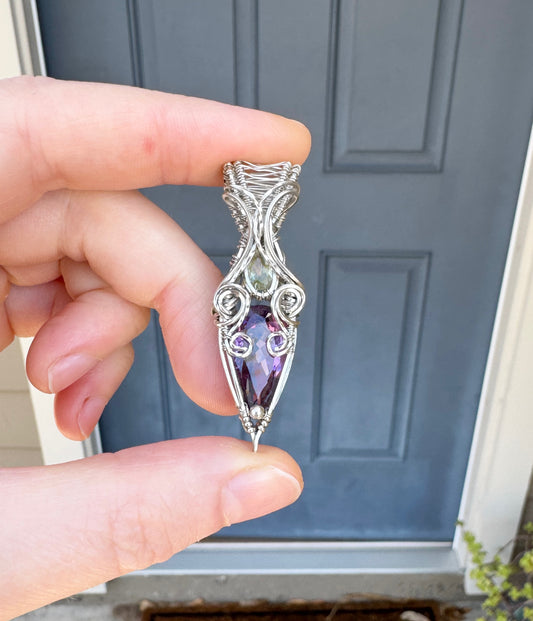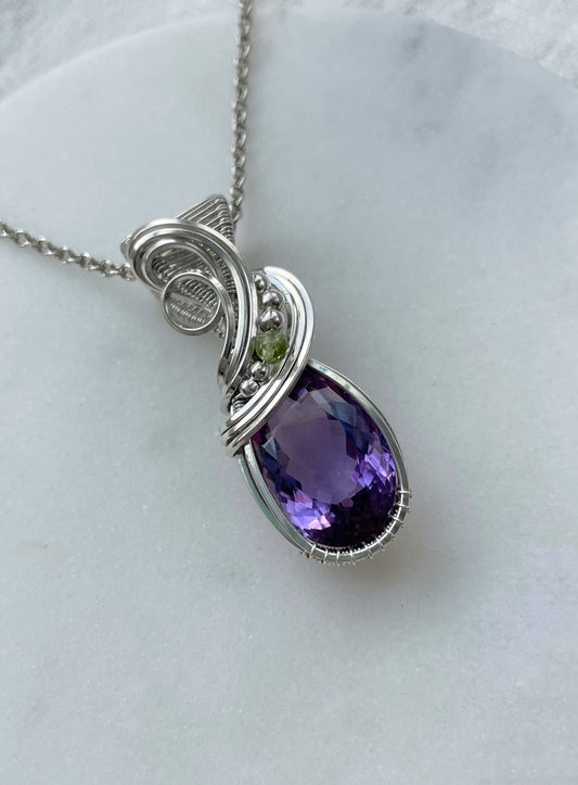 Faceted Amethyst & Peridot Necklace in 0.925 Sterling Silver