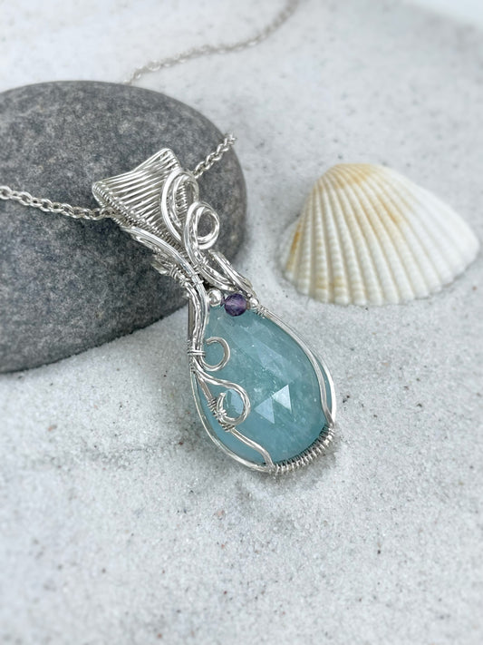 Faceted Aquamarine & Fluorite Necklace in Argentium Silver