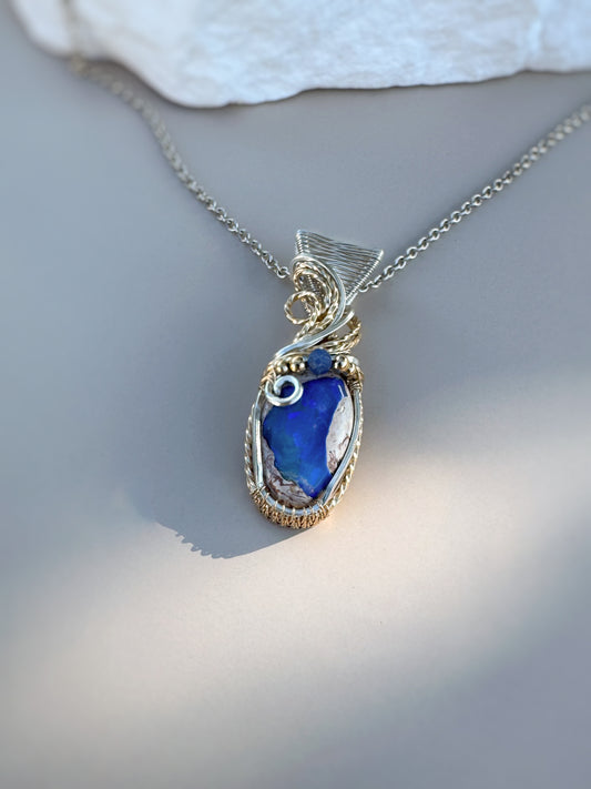 Mexican Opal & Blue Kyanite Mixed Metal (Argentium Silver & 14k Gold Filled) Necklace