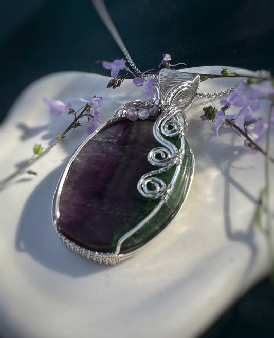 Fluorite Statement Piece Necklace in 0.925 Sterling Silver
