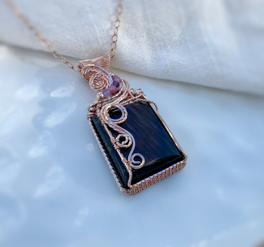 Labradorite, Pink Tourmaline & Amethyst Necklace in 14k Rose Gold Filled