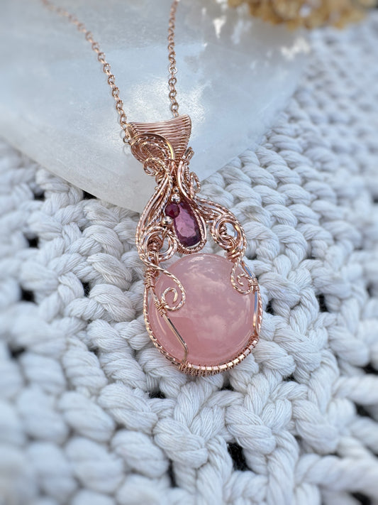 Rose Quartz, Pink Tourmaline & Rubellite Necklace in 14k Rose Gold Filled