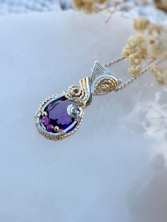 Amethyst & Purple Mica Necklace in 14k Gold Filled & Argentium Silver