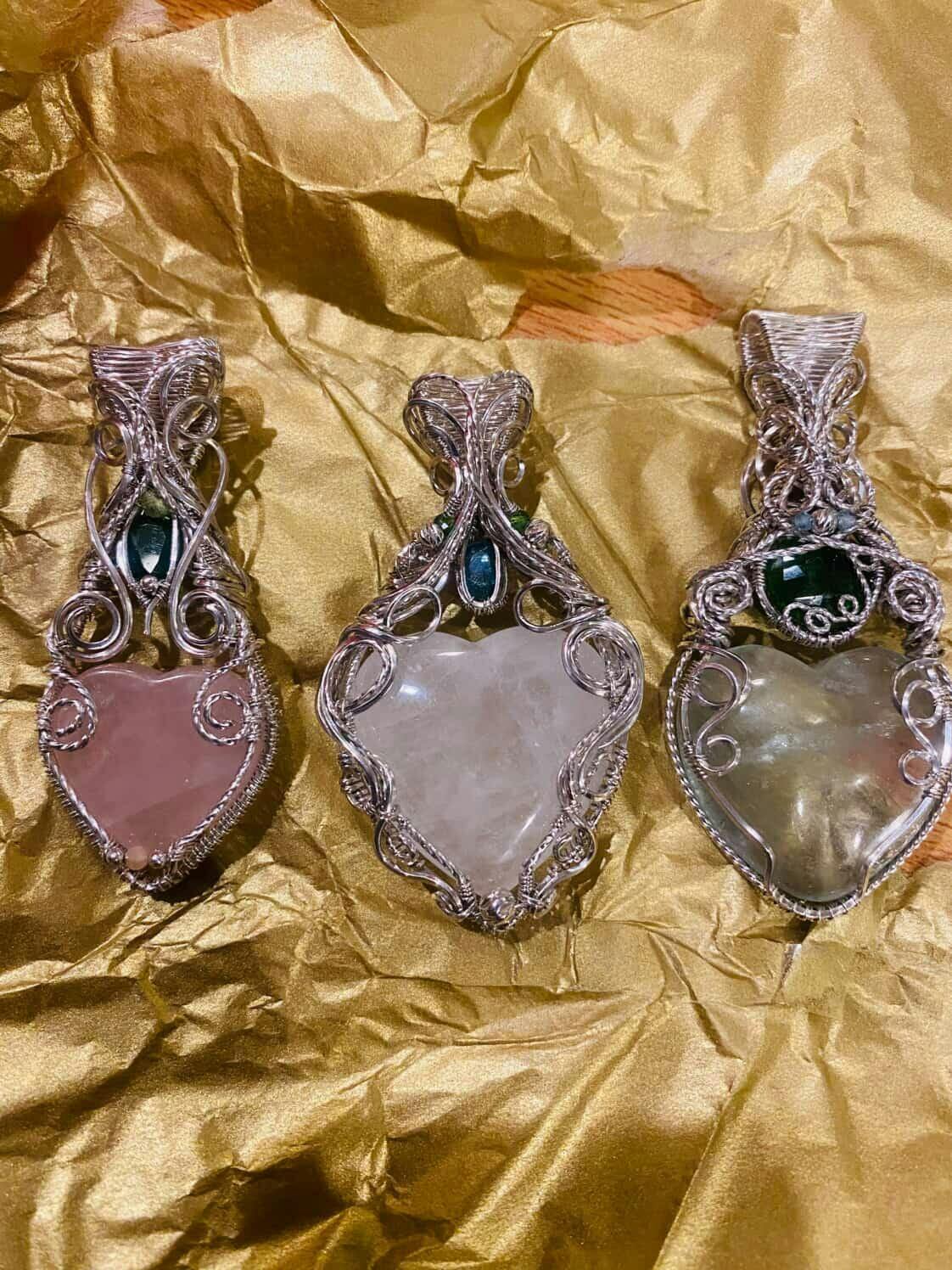 I love my mica and opal pendant and wear it frequently. The picture doesn’t do it justice. The color reminds me of gold which matches beautifully with the gold wire and chain. I’m always blown away by your skill and eye for color/stone combinations. Keep up the excellent work! You are truly gifted.
