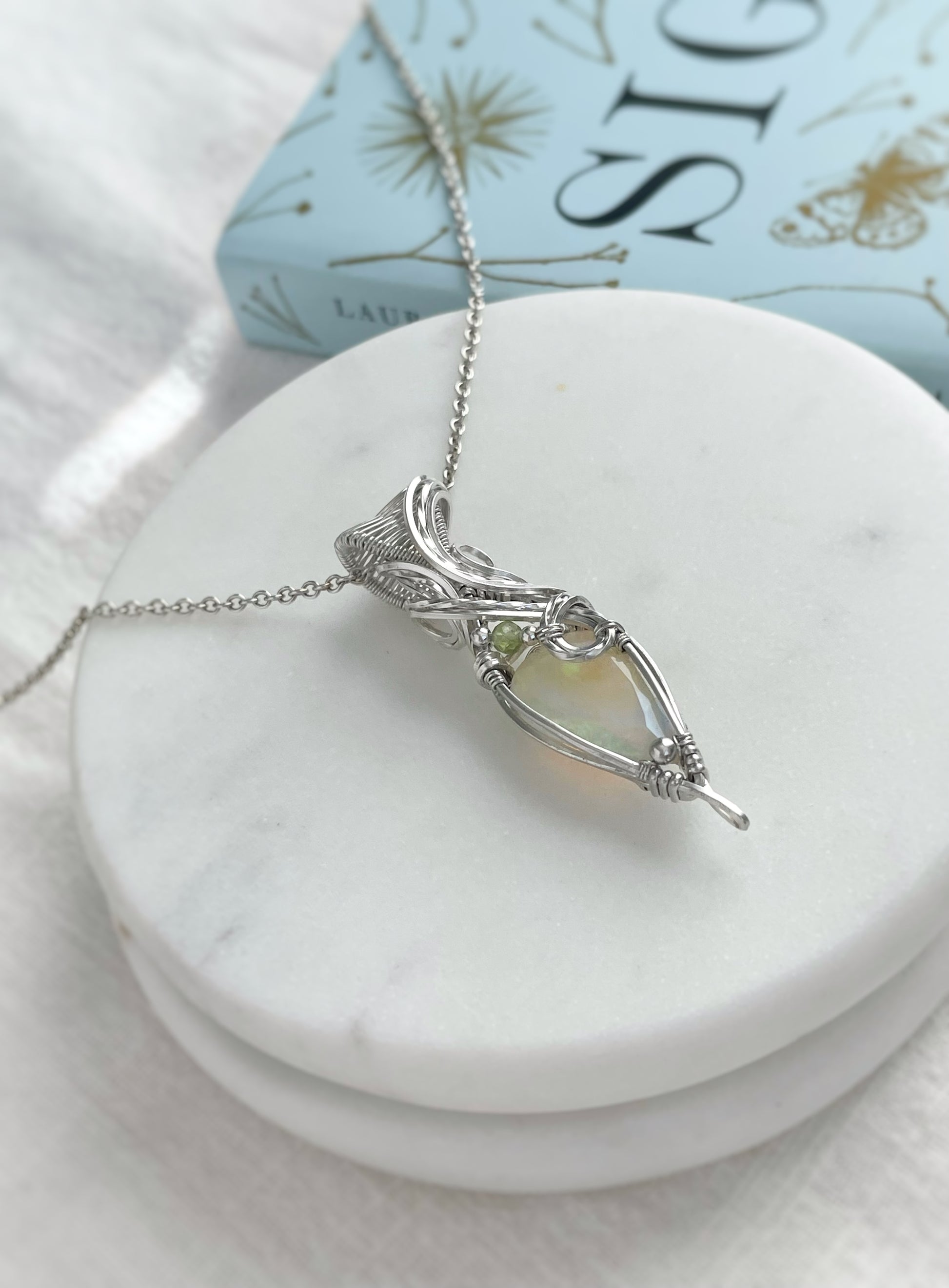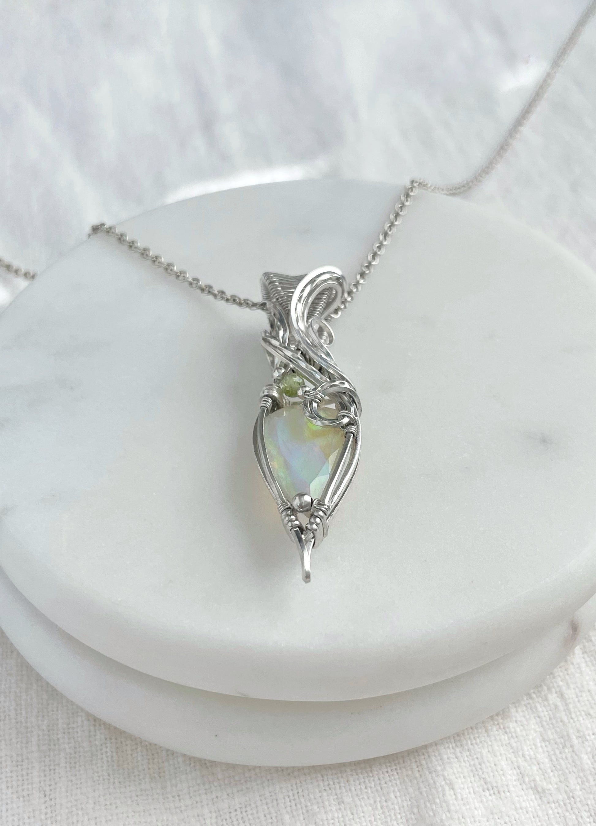 6.1ct Faceted Flashy Ethiopian Opal & Peridot Necklace in Argentium Silver