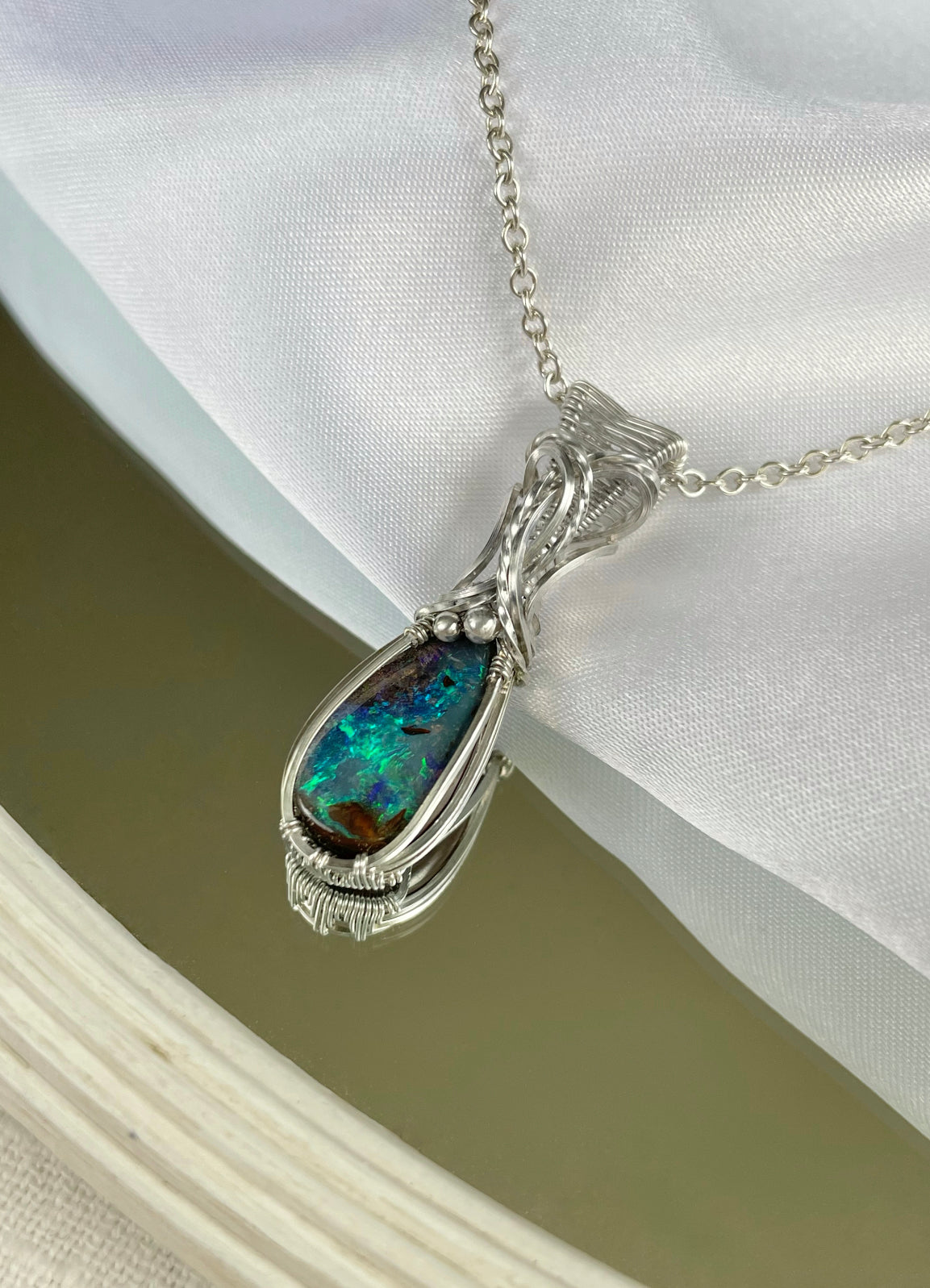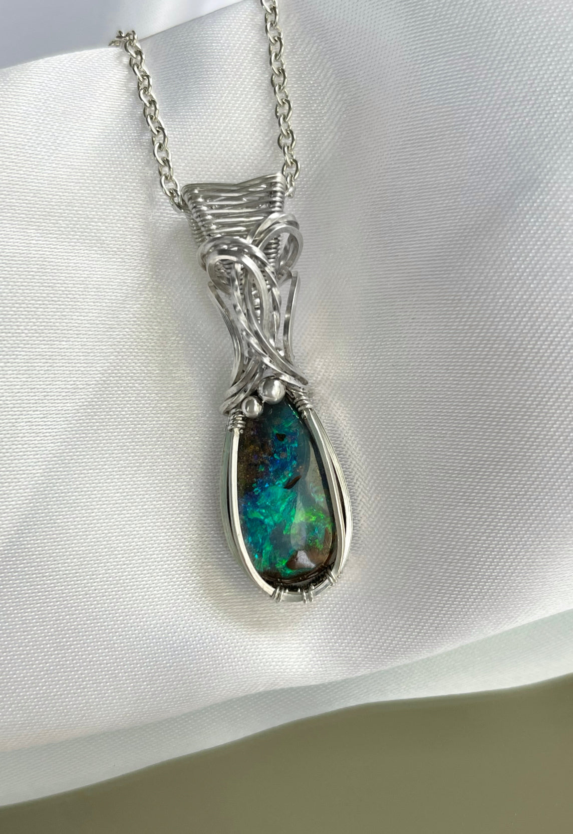 6.8 CT Australian Boulder Opal Necklace in Argentium Silver