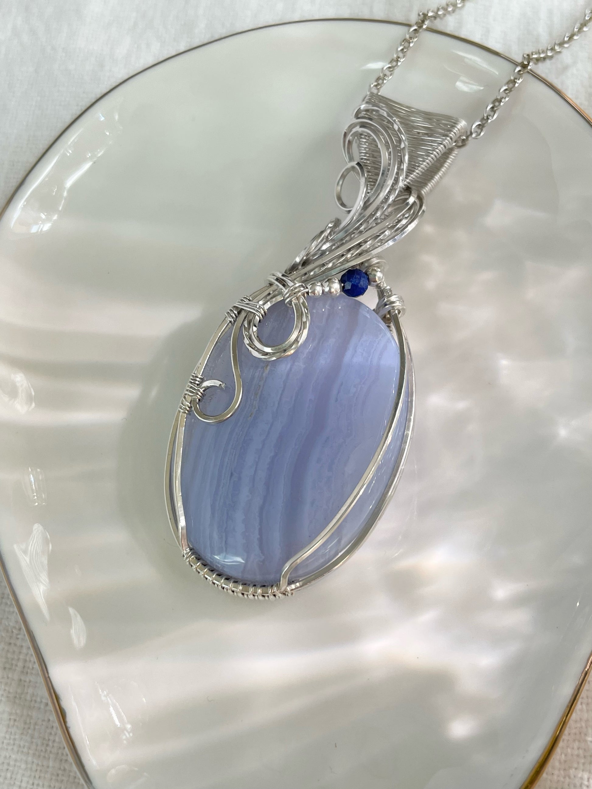 Blue Lace Agate & Lapis Lazuli Necklace in 0.925 Sterling Silver