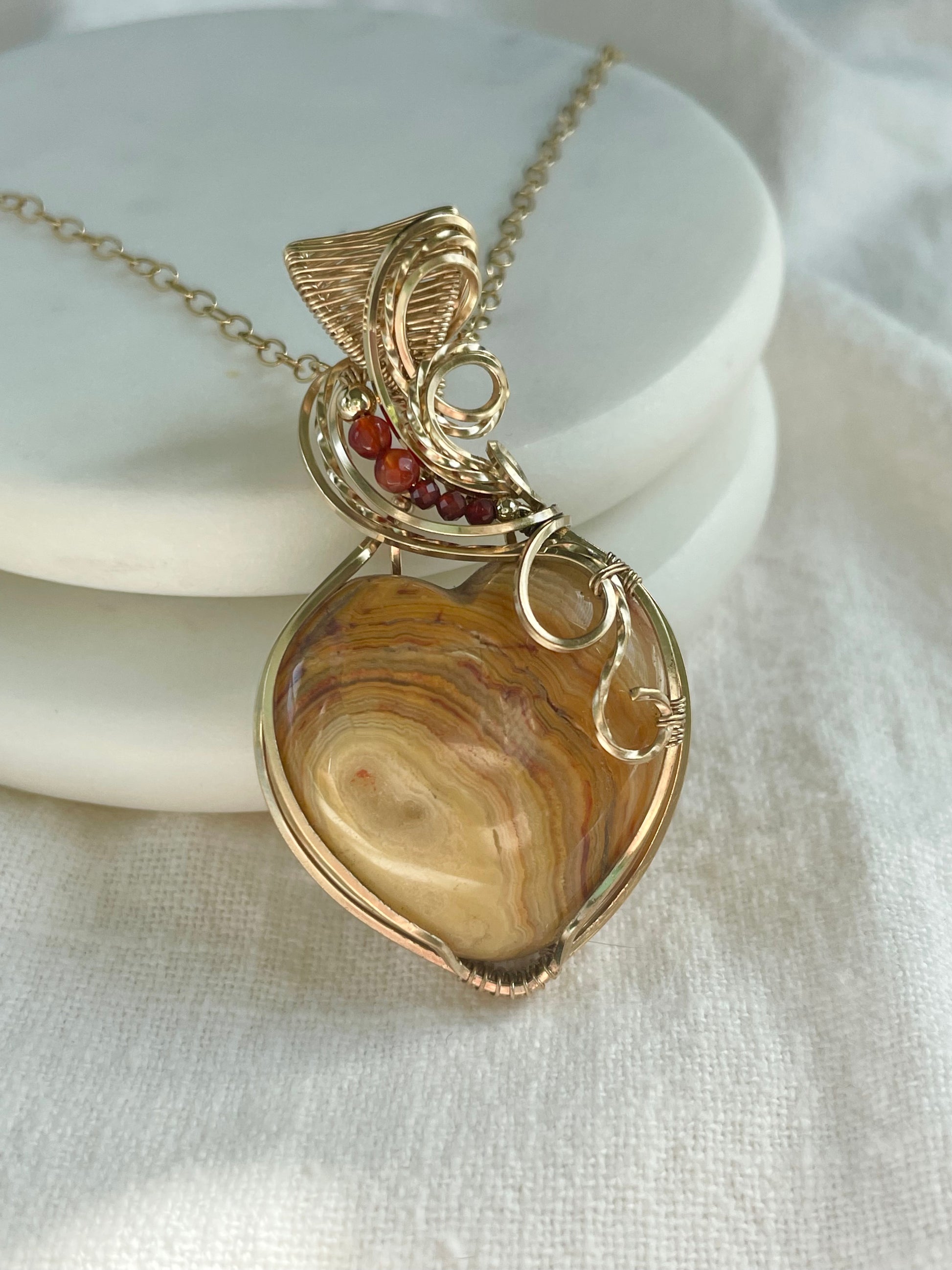 Crazy Lace Agate Heart & Carnelian Necklace in 14k Gold Filled