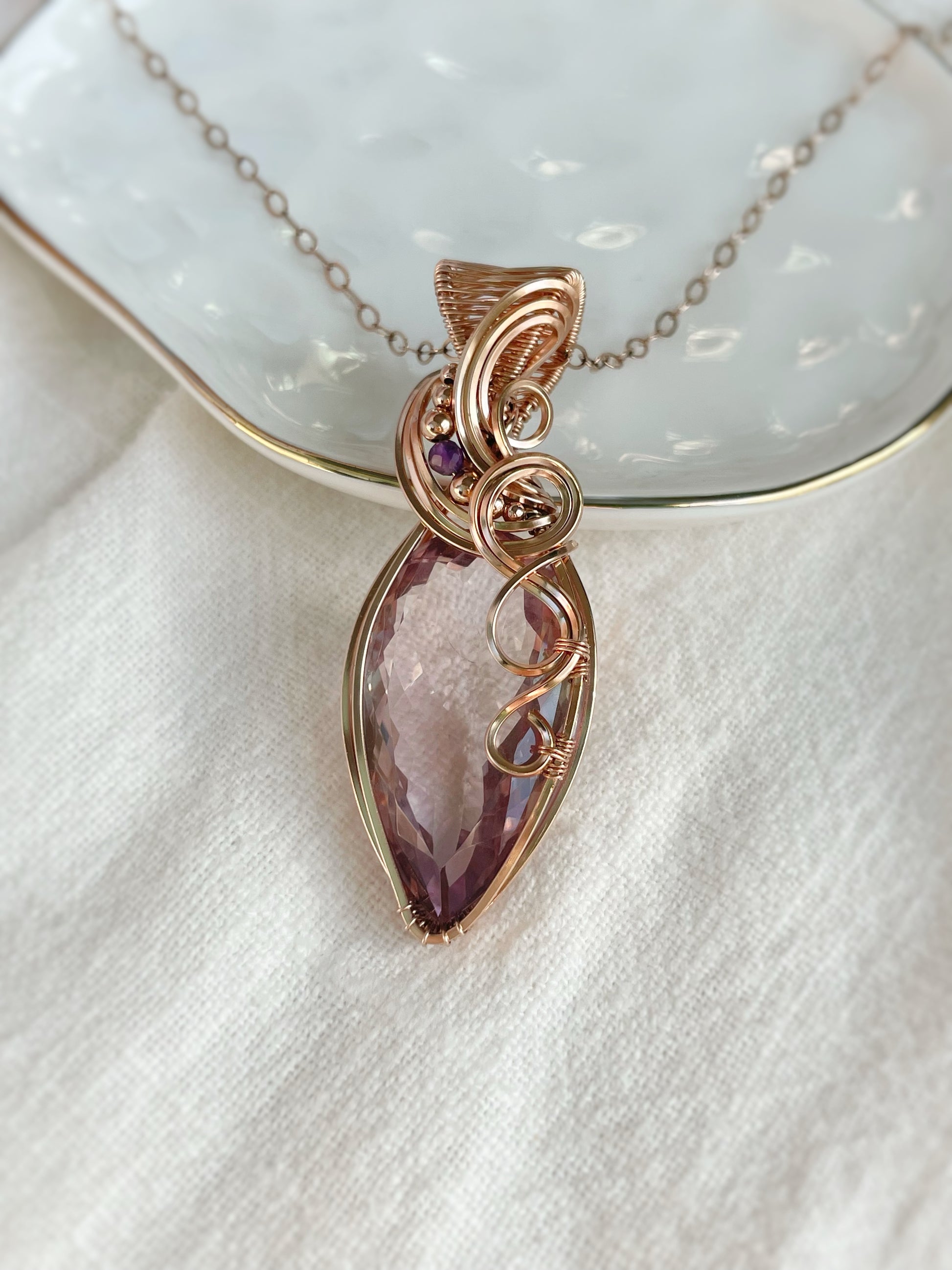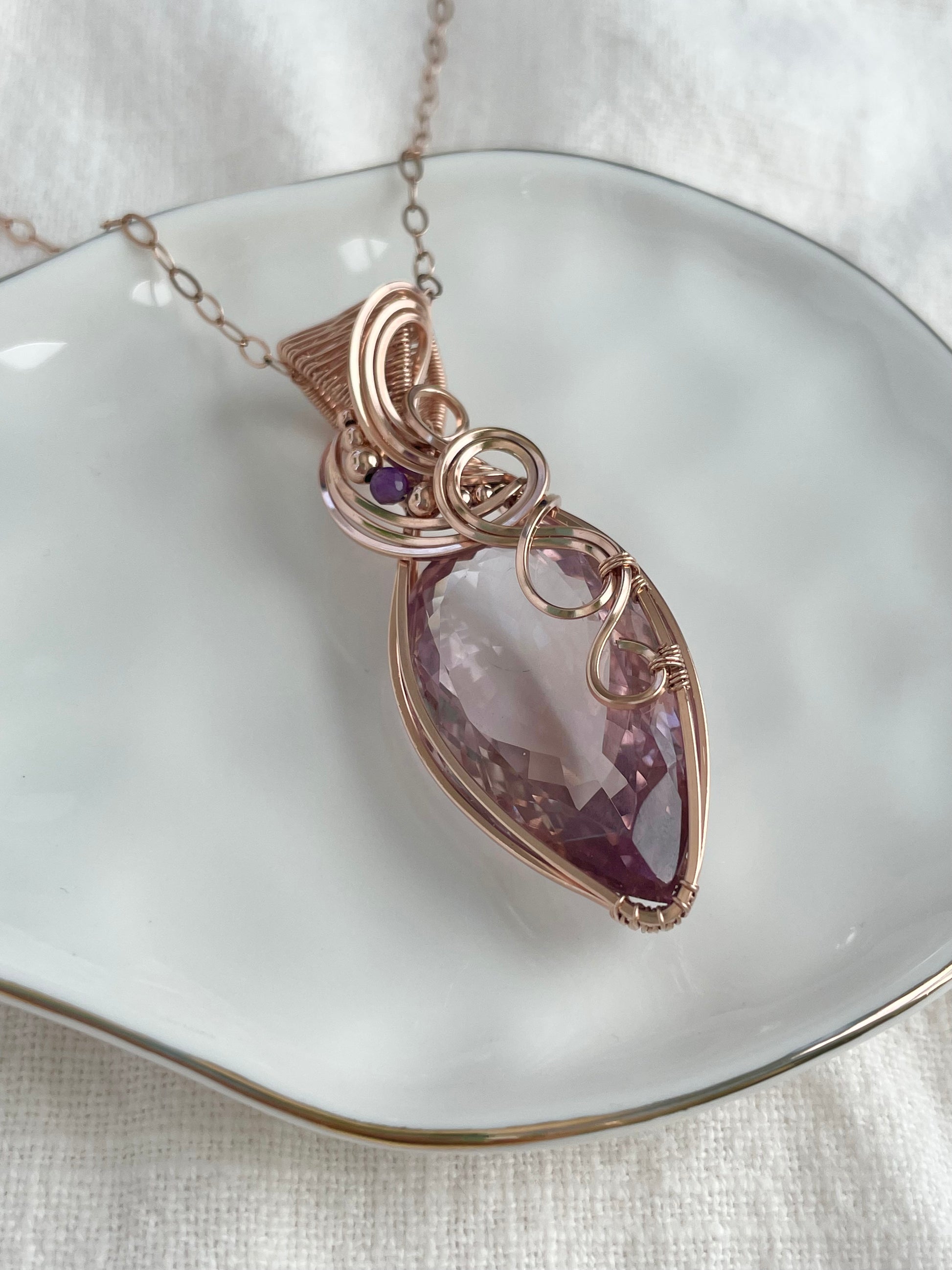 Faceted Ametrine & Amethyst Necklace in 14k Rose Gold Filled