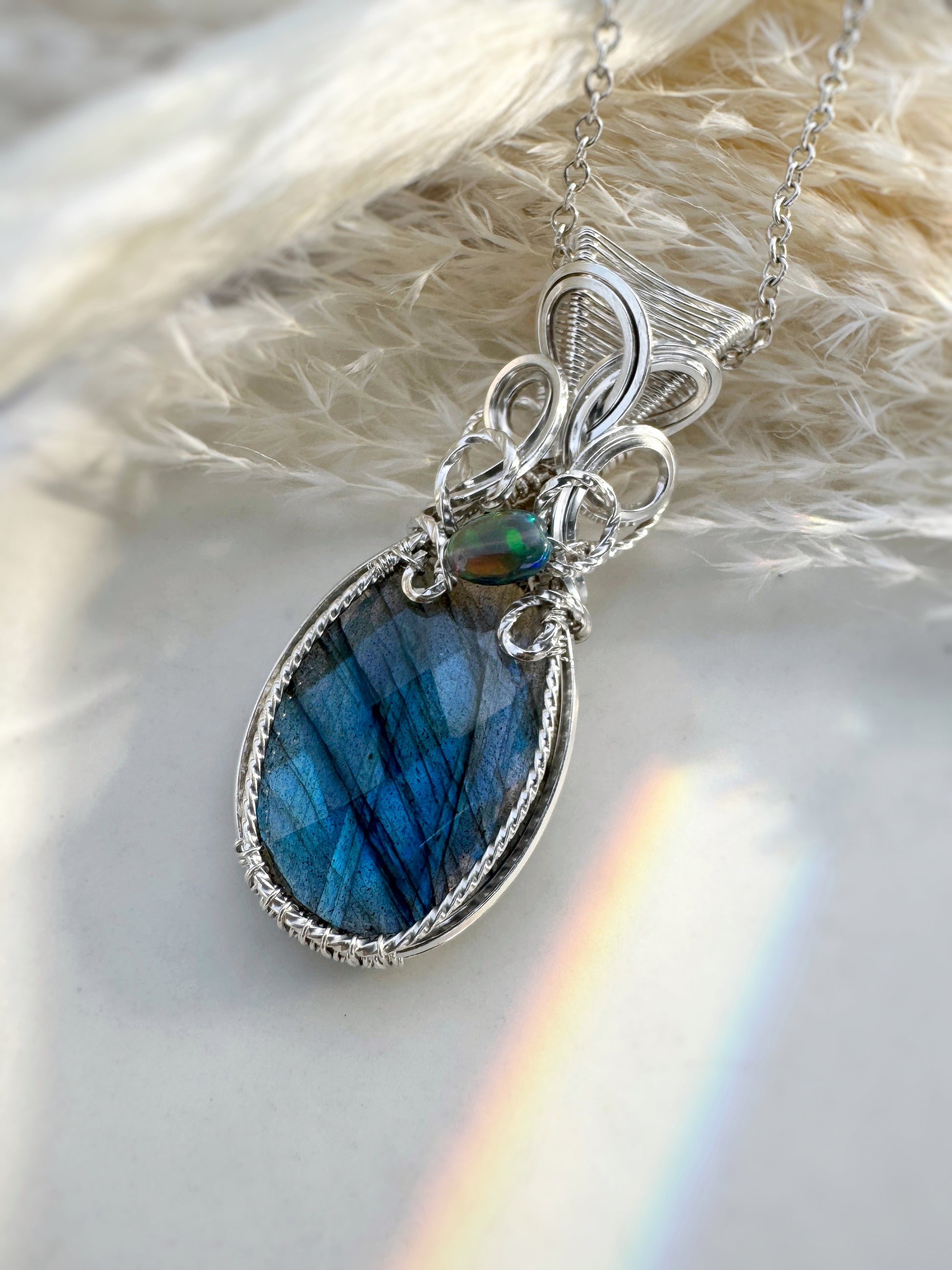 Faceted Labradorite & Ethiopian Opal 0.925 Sterling Silver Necklace