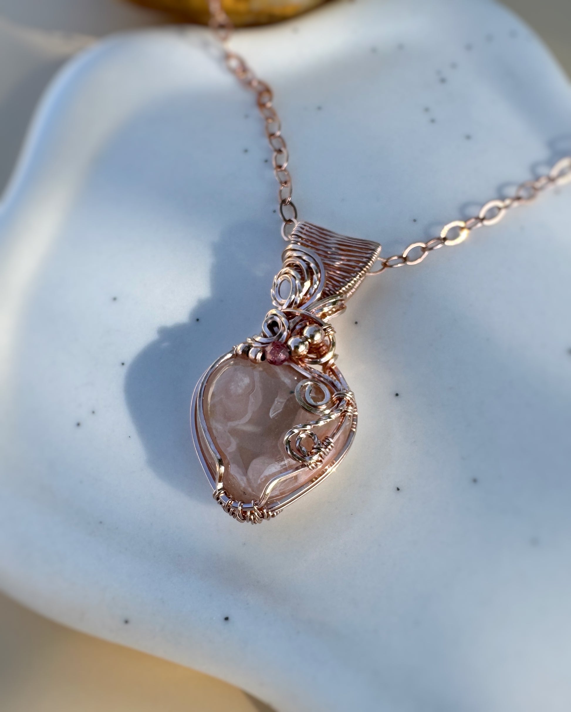 Flower Agate & Pink Tourmaline Necklace in 14k Rose Gold Filled